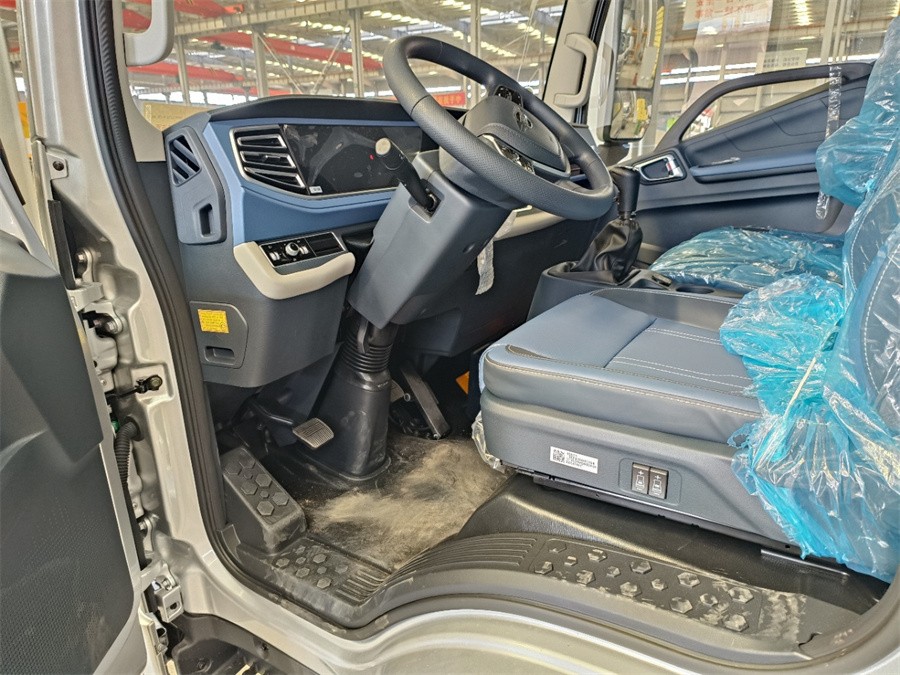配置:多功能方向盤、10.25寸雙聯斷碼屏、電動門窗+中控鎖+遙控鑰匙、倒車雷達、氣囊減震座椅、離合助力、定速巡航、電動空調、一體電加熱后視鏡、無骨雨刷、排氣制動、80A雙電瓶、150L大油箱、LED 大燈