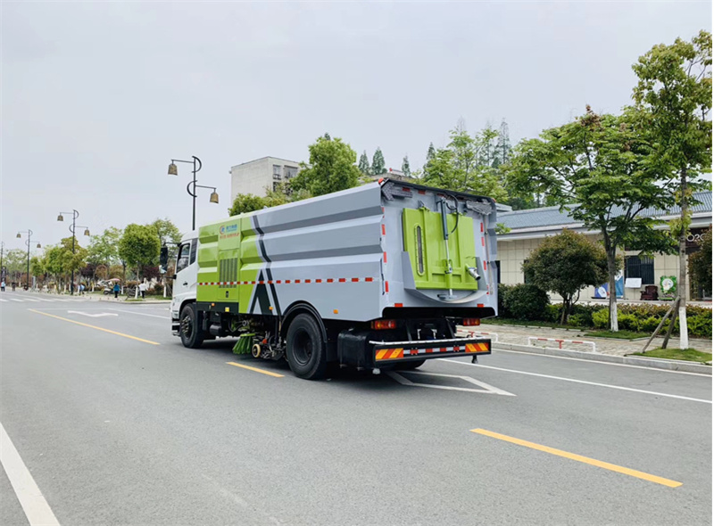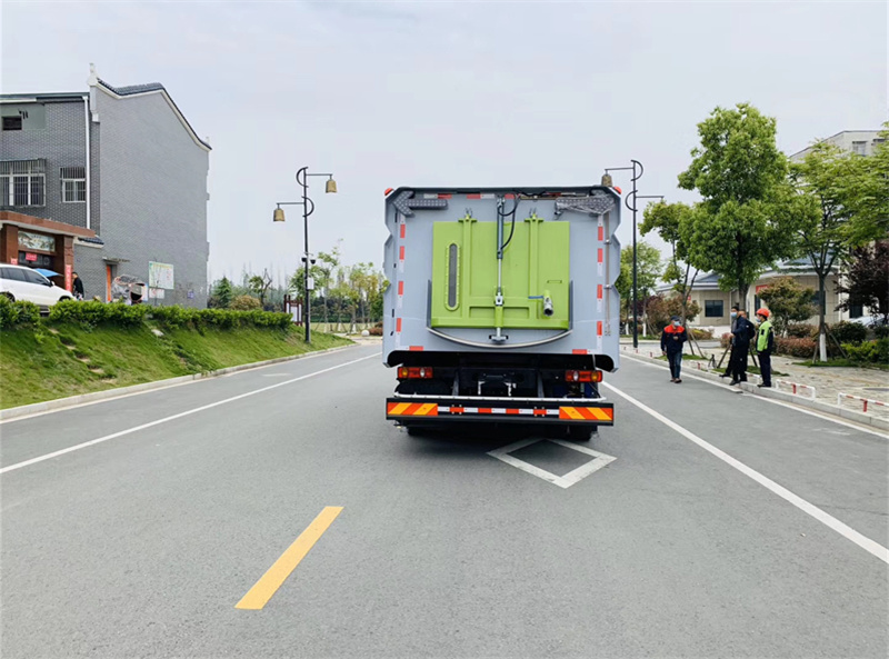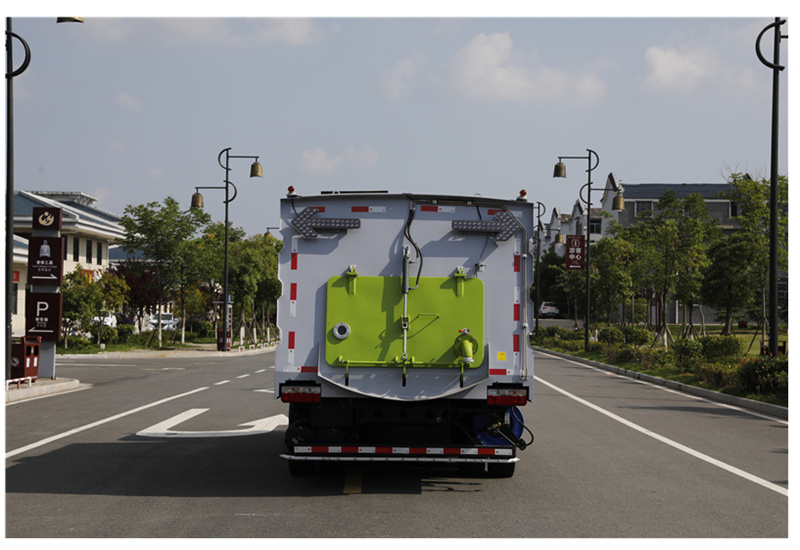 6)具備倒車保護(hù)裝置,在作業(yè)過程中如遇緊急倒車,智能化的控制系統(tǒng)會自動停止作業(yè)并收回掃盤、吸盤和側(cè)噴桿;具有防止舉升垃圾箱翻車保護(hù);具有檢修安全保護(hù)。